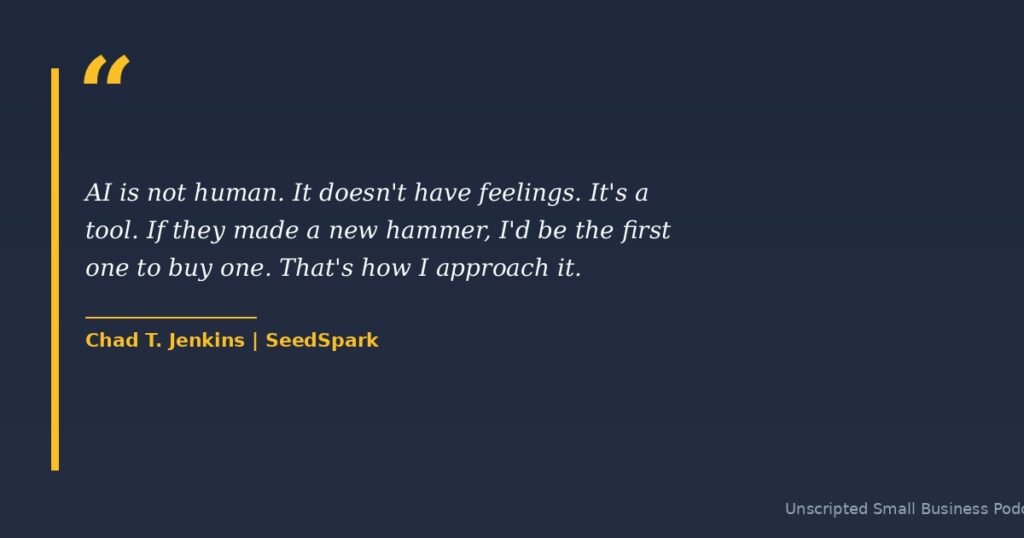 “AI is not human. It doesn’t have feelings. It’s a tool — a better hammer. If they made a new hammer, I’d be the first one to buy one. That’s how I approach it.” — Chad T. Jenkins | SeedSpark