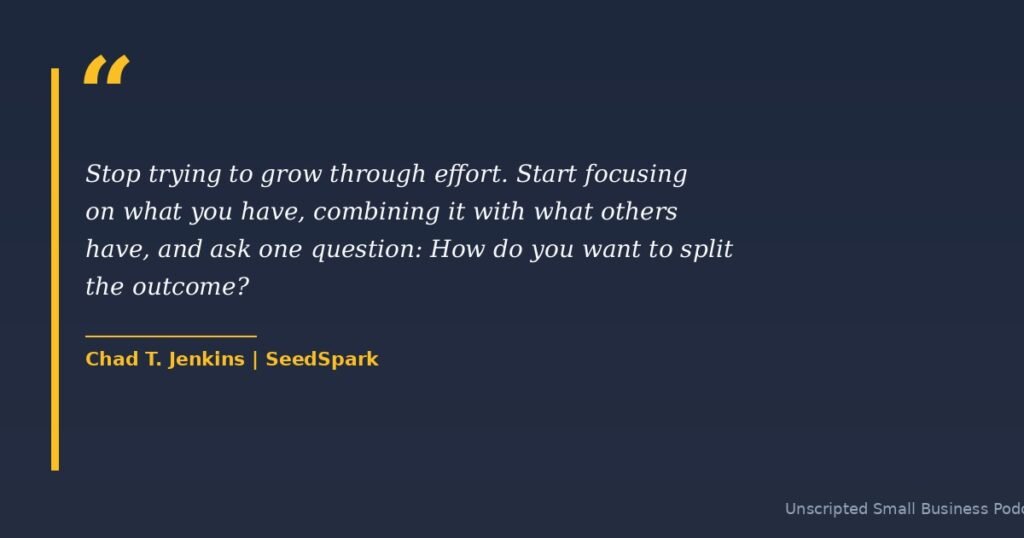 “Stop trying to grow through effort. Start focusing on what you have, combining it with what others have, and ask one question: How do you want to split the outcome?” — Chad T. Jenkins